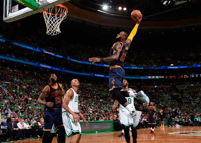 LeBron James sumó 35 puntos y rebasó a Michael Jordan como el máximo anotador en la historia de la NBA, para que los Cavaliers de Cleveland apabullaran el jueves 135-102 a los Celtics de Boston y sellaran su pasaje para una tercera final consecutiva ante los Warriors de Golden State.