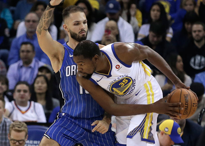 Kevin Durant sumó 21 puntos, un récord de temporada de ocho asistencias y siete rebotes, Shaun Livingston anotó 16 puntos como suplente del lesionado Stephen Curry y los Warriors de Golden State abrieron una ventaja en la segunda mitad para imponerse 110-100 el lunes al Magic de Orlando, en su séptima victoria seguida.