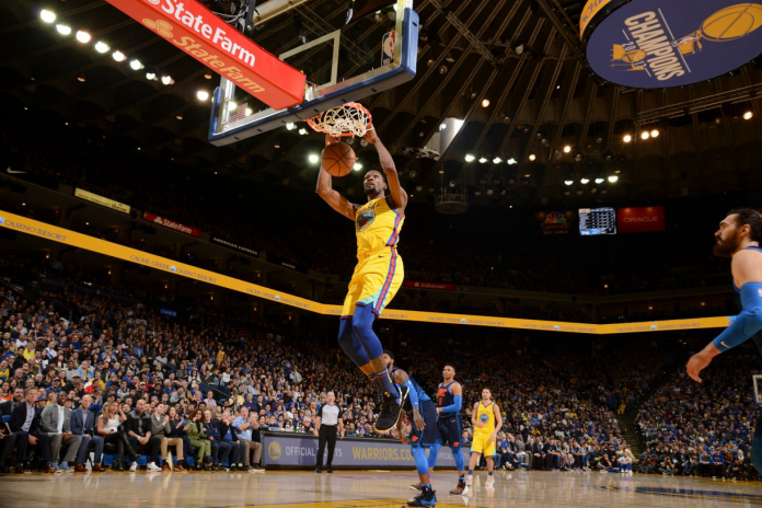 Los Warriors de Golden State opusieron una férrea defensa todo el partido y lanzaron una increíble ofensiva a la mitad del tercer periodo para apabullar el sábado 112-80 al Thunder de Oklahoma City.
