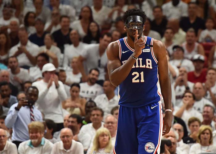 Joel Embiid tuvo algunos problemas con su nueva máscara protectora. Pero ello no se reflejó en su desempeño.