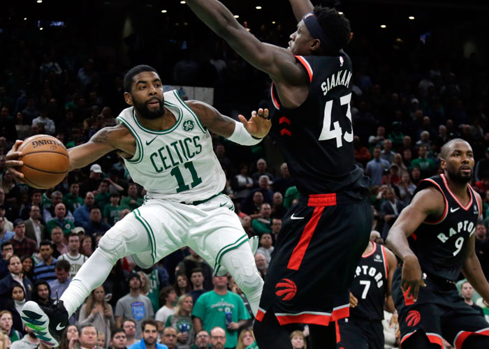Kyrie Irving registró su mayor aportación ofensiva de la temporada con 43 puntos y encestó o asistió para canasta en cada anotación de los Celtics en el tiempo extra para llevar a Boston a una victoria el viernes por 123-116 sobre los Raptors de Toronto.