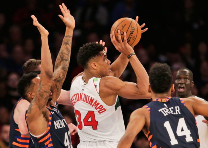 Giannis Antetokounmpo totalizó 30 puntos y 14 rebotes durante su debut en partidos navideños, y los Bucks de Milwaukee celebraron su regreso a esta cartelera festiva al imponerse el martes 109-95 sobre los Knicks de Nueva York.