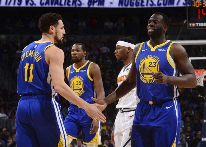 Stephen Curry y Klay Thompson anotaron 31 puntos cada uno para que Golden State, impulsados por un récord de 51 unidades en el primer cuarto, recuperaran la cabeza del Oeste con una aplastante victoria el martes por 142-111 ante los Nuggets de Denver.