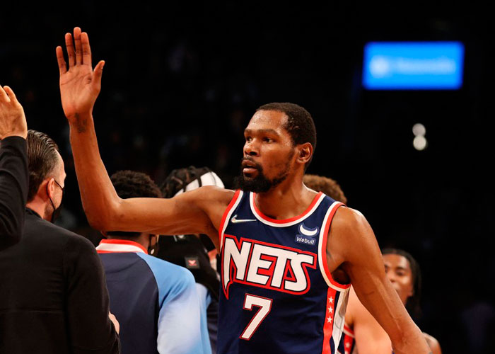 El alero Kevin Durant, máximo anotador de la temporada de la NBA; se unió este sábado a una larga lista de bajas de los Brooklyn Nets por los protocolos de prevención del coronavirus.