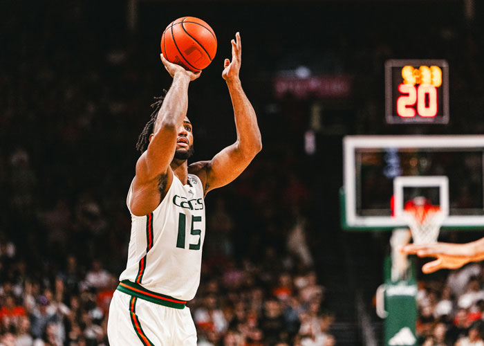Norchad Omier mostró dominio en ambos extremos de la cancha, terminando con 19 puntos, 12 rebotes, un bloqueo y cuatro robos. En dos partidos con los Canes, el nicaragüense ya suma su segundo doble-doble de la campaña y el 53 de su carrera en la NCAA.