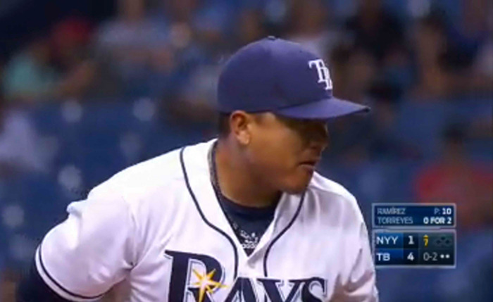 Erasmo Ramírez tuvo esta tarde su tercera aparición de la campaña y esta vez no corrió con tanta suerte como en las primeras dos, pues los Yankees de Nueva York le rompieron el 0.00 de efectividad al hacerle dos carreras en 1.2 entradas de labor.