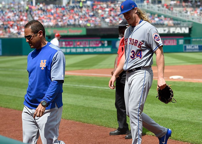 El abridor estelar de los Mets de Nueva York, Noah Syndergaard, estará inactivo al menos hasta después de la pausa por el Juego de Estrellas debido a un desgarro parcial de su músculo dorsal ancho derecho.