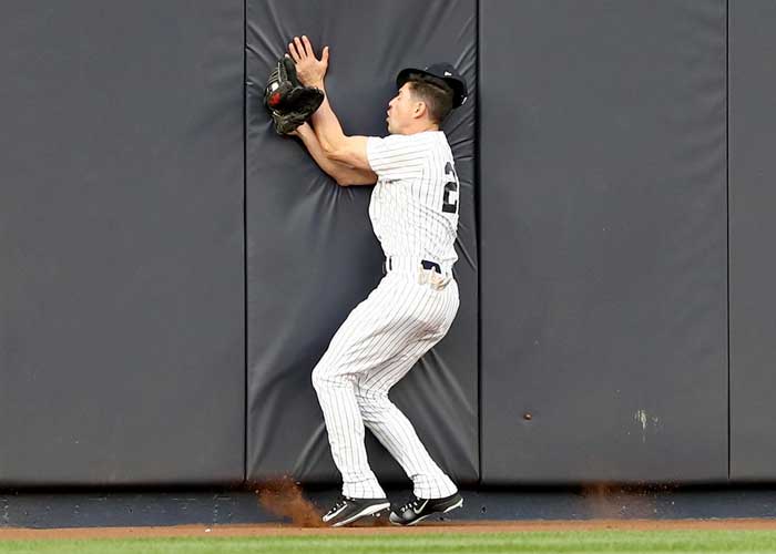 El jardinero sufrió la conmoción y una torcedura de cuelo tras golpearse la cabeza con el muro mientras intentaba atrapar un batazo de Alcides Escobar en un partido el 24 de mayo en Kansas City.