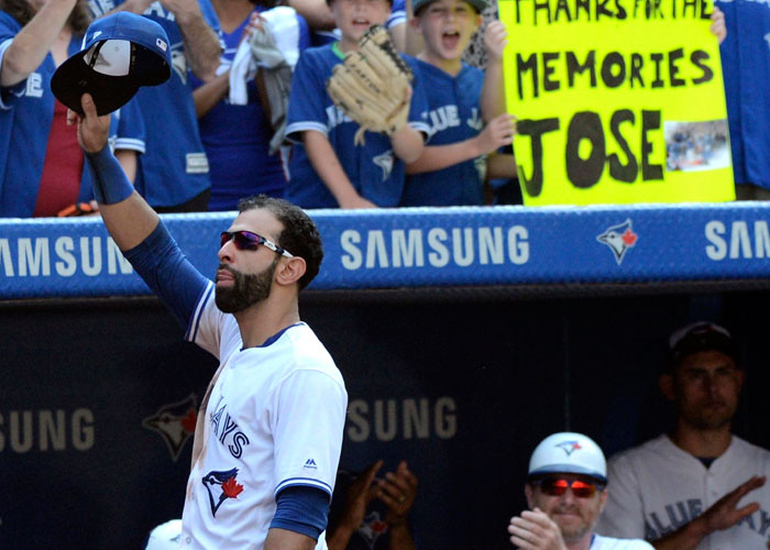 José Bautista bateó dos hits y recibió un boleto en el que pudo haber sido su último juego en casa con los Azulejos de Toronto, despidiéndose con una ovación de pie durante el noveno inning de la victoria 9-5 sobre los Yanquis de Nueva York.