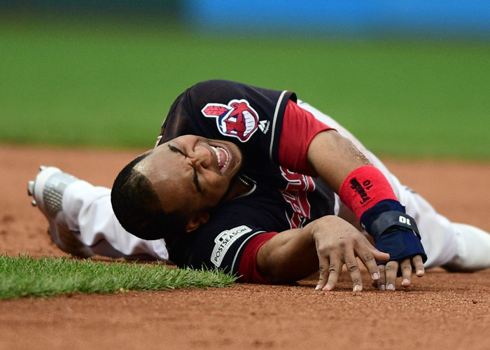 Encarnación tenía puesta una bota protectora y caminaba con muletas el sábado en el día libre de la serie, programada al mejor de cinco. Los Indios tienen ventaja de 2-0.