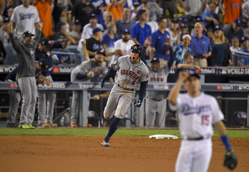 Los Astros emergieron victoriosos de un vibrante derby de jonrones en el Dodger Stadium al vencer el miércoles por 7-6 a los Los Ángeles para empatar 1-1 la Serie Mundial.