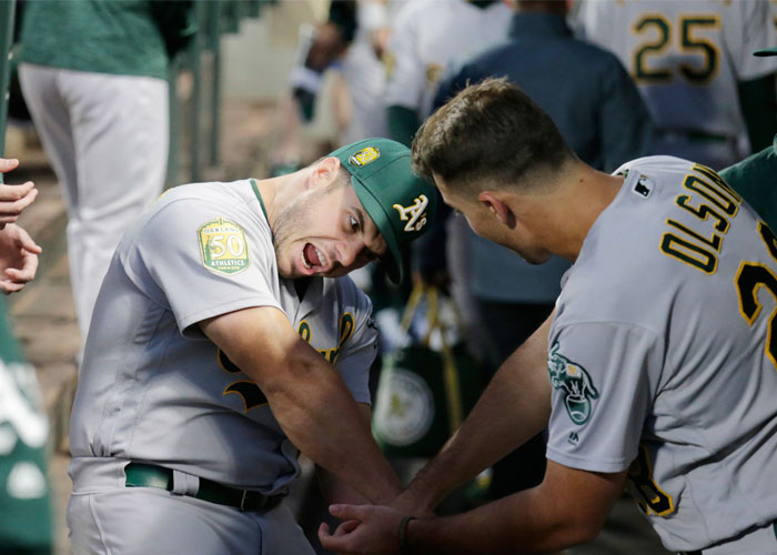 “Han madurado algunos jugadores jóvenes y, en mi opinión, se han convertido en estrellas”, dijo el manager Bob Melvin. “Pienso que los chicos en las esquinas (el antesalista Matt Chapman y el primera base Matt Olson) deberían ganar el Guante de Oro”.