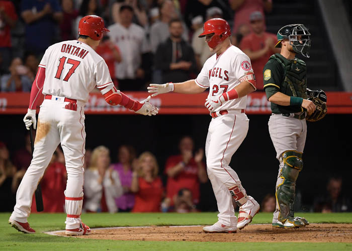 Mike Trout conectó un jonrón de dos carreras, Shohei Ohtani bateó de 3-3 y los Angelinos de Los Ángeles derrotaron el viernes 8-5 a los Atléticos de Oakland en el primer juego de la serie.