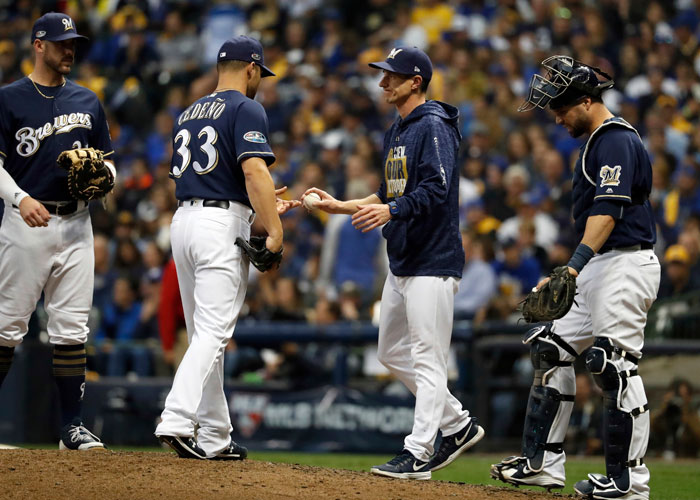 “O es muy prematuro o es demasiado tarde”, dijo el manager Craig Counsell. “Llega un momento en el que hay que tomar una decisión, y consideré que le tocaba enfrentar a la parte medular de la alineación por tercera vez”.