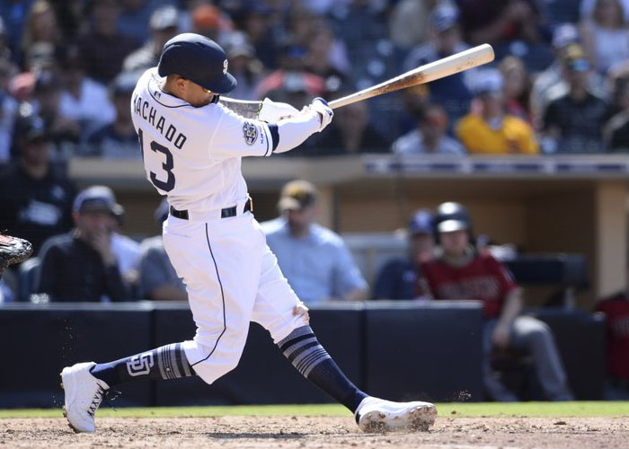 Machado prendió una recta en cuenta de 0-2 y la sacó de línea al balcón del segundo nivel del Western Metal Supply Co. Building en la esquina del jardín izquierdo. El cuadrangular con dos outs llegó contra el exlanzador de los Padres, Matt Andriese, luego de un sencillo con un out de Ian Kinsler, otro de los nuevos jugadores de San Diego.
