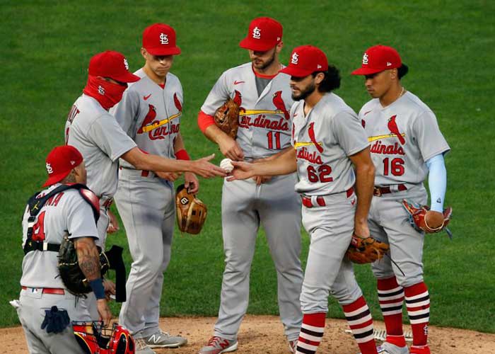 Dos peloteros de los Cardenales arrojaron positivo el viernes, obligando a la cancelación del primer duelo de la serie en Milwaukee. Ambos equipos esperaban reanudar sus actividades el sábado y cubrir su duelo del viernes como parte de una doble cartelera el domingo.