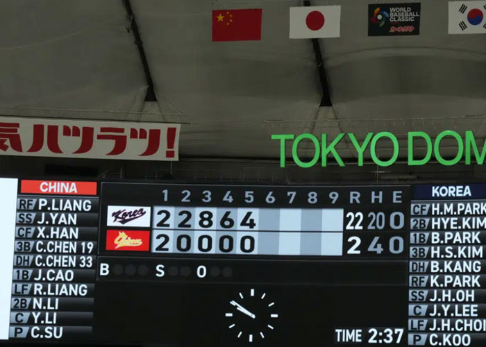 Corea del Sur rompió el récord de carreras anotadas vigente desde que Japón venció 18-2 a China en la primera ronda del primer Clásico en 2006.