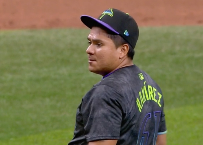 Ramírez entró en extra innings por parte de los Tampa Bay Rays con un out y un corredor en posición anotadora como es de costumbre. El nica retiró tiró 0.2 inning de relevo con una base por bolas.