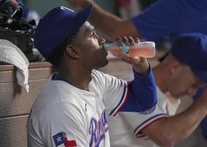 El dominicano Leody Taveras conectó un doble de dos carreras y el jonrón en solitario del cubano Adolis García fue su 15º contra los Angelinos. Corey Seager conectó su cuadrangular número 100 con Texas.