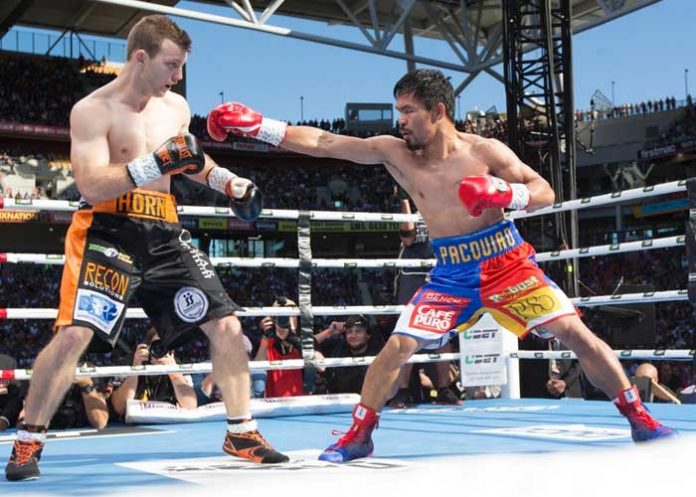Horn comenzó fuerte y ganó al menos tres de los primeros cinco asaltos en las anotaciones. Pero Pacquiao, quien recibió dos veces atención por una cortada en la cabeza (en el sexto y séptimo round), pareció dominar las hostilidades desde el octavo.