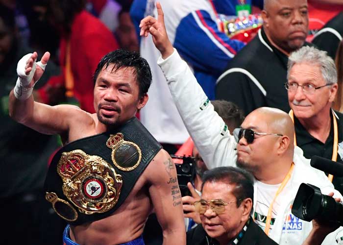 Manny Pacquiao, la leyenda filipina del boxeo, fue declarado "campeón en descanso" en la noche del viernes al sábado por la Asociación del Mundial (AMB) de boxeo, donde era poseedor del cinturón del peso welter, que va a manos del cubano Yordenis Ugás.