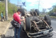 Vuelco de vehículo cerca de la Rotonda Universitaria