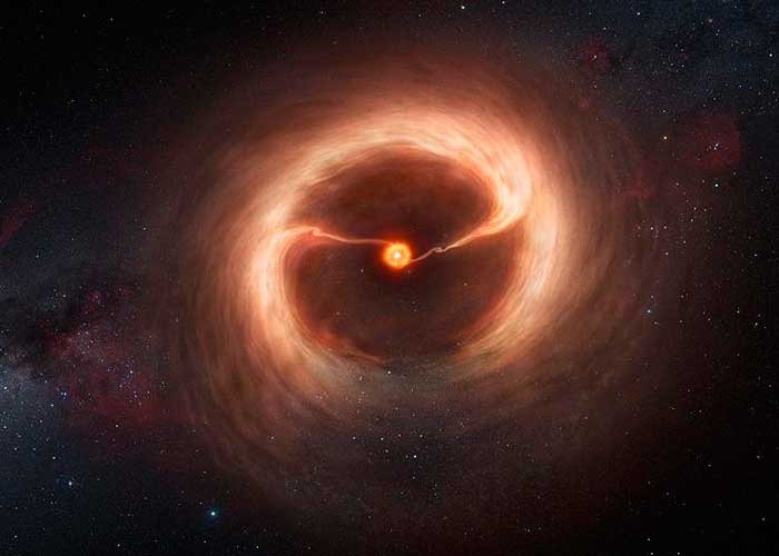 Un grupo de investigadores ha descubierto en torno a una estrella muy joven un disco denso de gas y polvo que se asemeja a una "hamburguesa espacial" de la que se alimenta la formación estelar, informó hoy la revista Science Advances.