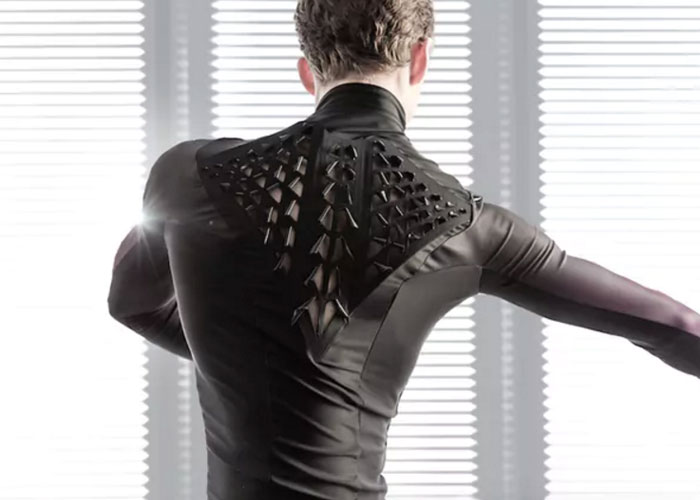 La zona de la espalda de la camisa bioLogic está cubierta de pequeñas solapas semicirculares, semejantes a las escamas de los monstruos en las películas como Alien.