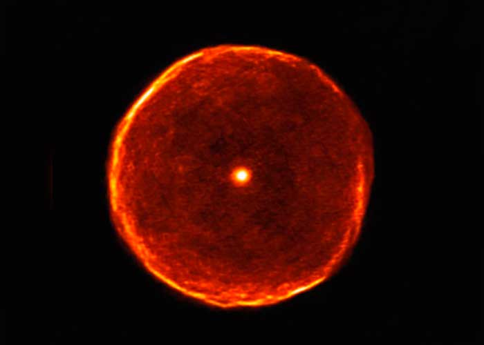 Si un aficionado a la astronomía mira hacia el sur, en busca de la constelación de Antlia, podrá ver una estrella muy roja, que varía ligeramente en brillo semana a semana. Esta estrella, casi única, se llama U Antliae y gracias a nuevas observaciones con el telescopio ALMA, está revelando una capa exterior perfectamente esférica y notablemente delgada alrededor de ella .