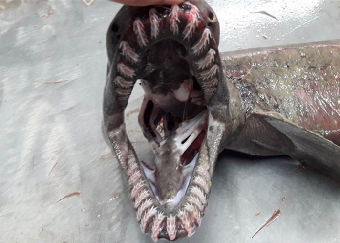 Poco tardarían en comprobar que estaban frente a un Chlamydoselachus anguineus o, como vulgarmente se le denomina, un tiburón anguila, una especie prehistórica poco conocida.
