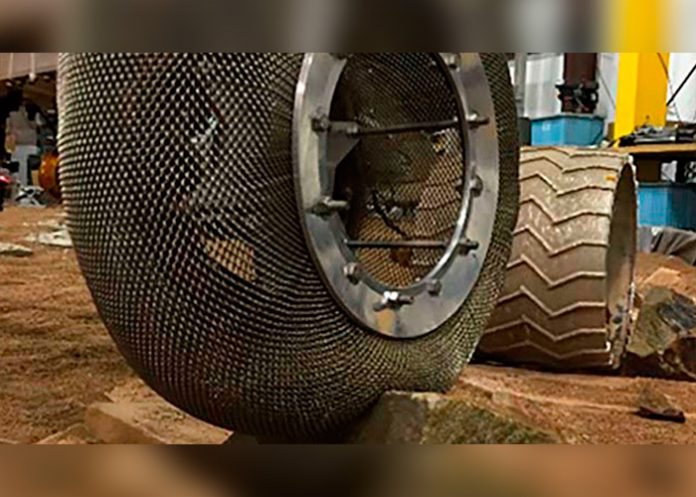 Los especialistas de la NASA también probaron la Spring Tire en un todoterreno y superó con éxito una superficie de grava y guijarros.