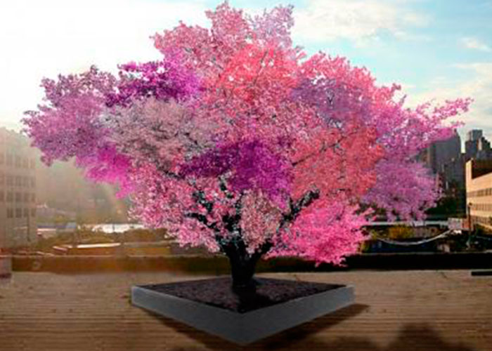 Las exhibiciones "The Tree of 40 Fruit" logran mejorar la belleza primaveral de un árbol, con flores que irradian un espectro de colores pastel vibrantes.