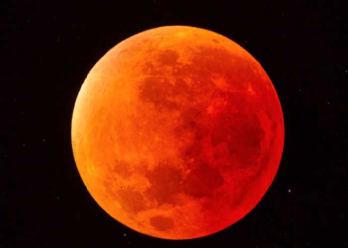 Al estar privada de los rayos del Sol, la Luna se ensombrecerá y se teñirá de rojo. Este color se explica por el hecho de que la atmósfera terrestre desvía los rayos rojos de la luz solar hacia el interior del cono de sombra, y la Luna puede reflejarlos.