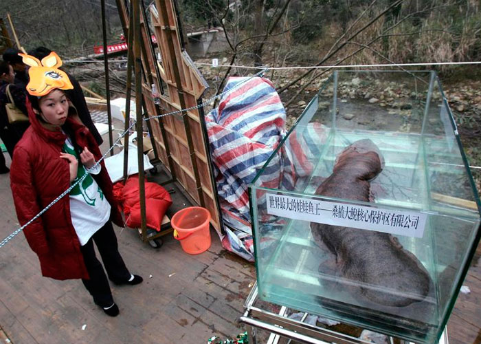 Entre las especies amenazadas se encuentra la salamandra gigante china (Andrias davidianus) que puede alcanzar los 1,8 metros.