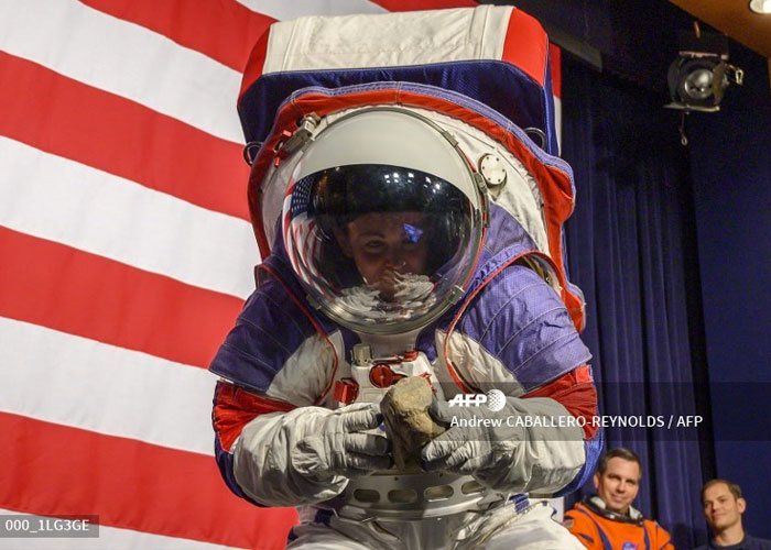 Frente a una enorme bandera estadounidense en la sede de la Agencia Espacial de Estados Unidos en Washington, los ingenieros se pusieron los trajes frente a la prensa. Los trajes anteriores, que se usaron para caminar en la Luna en las misiones Apolo (1969-1972), son verdaderos miniespacios que proporcionan oxígeno al astronauta, reciclan el aire, regulan la temperatura interna y protegen contra la radiación.