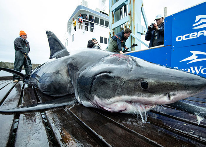 El ejemplar fue capturado este mes de octubre por miembros de OCEARCH, una organización sin ánimo de lucro formada por científicos y marineros que recorren los mares en su laboratorio flotante y que capturan tiburones y otros animales marinos para medirlos, etiquetarlos con dispositivos rastreadores y estudiar luego sus movimientos en tiempo real.