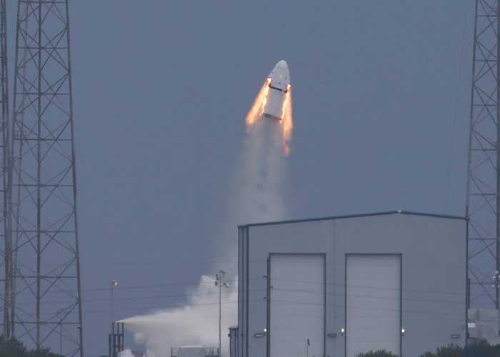 SpaceX confirmó este miércoles que completó con éxito una prueba crucial del sistema de aborto de lanzamiento de la nave espacial Crew Dragon en Cabo Cañaveral, Florida (EE.UU.)