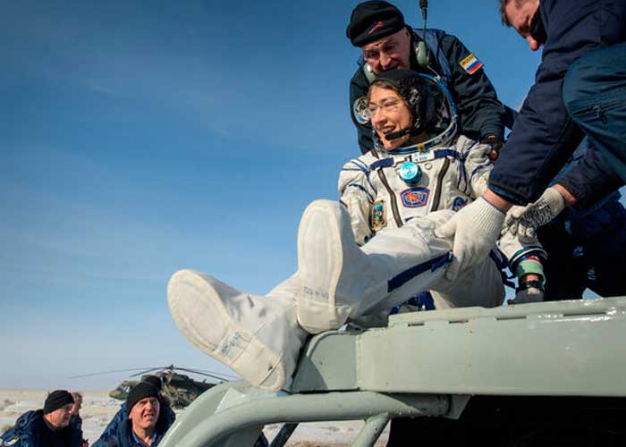 Koch, que llegó desde la estación espacial internacional a las 09.00 GMT junto al astronauta italiano Luca Parmitano y el cosmonauta ruso Alexander Skvortsov ambos de la Agencia Espacial Europea, se convierte además en el segundo astronauta de la NASA que más tiempo seguido ha estado en el espacio, solo por detrás de Scott Kelly y los 342 días que estuvo en la estación.