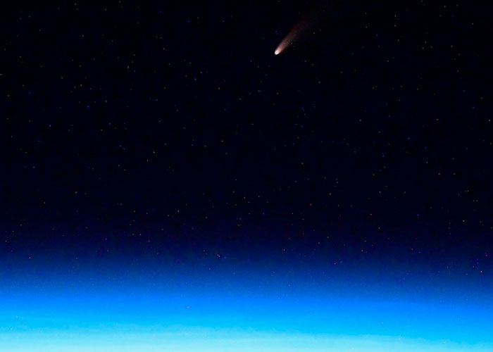El cosmonauta ruso Iván Vágner compartió este sábado en su cuenta de Twitter una foto impactante, tomada desde la Estación Espacial Internacional, del cometa C/2020 F3, también conocido como 'NEOWISE', cuando pasaba cerca de la Tierra.