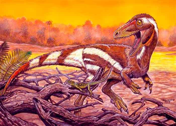 Aunque no se han encontrado plumas fosilizadas asociadas con el animal, se entiende que los individuos del grupo Coelurosauria ya tendrían rudimentos de plumas, con filamentos. EFE