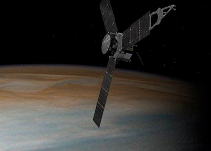 "Los datos de JIRAM muestran que el hielo en y alrededor del polo norte de Ganímedes ha sido modificado por la precipitación de plasma", dijo el científico planetario Alessandro Mura, un co-investigador de Juno en el Instituto Nacional de Astrofísica en Italia.