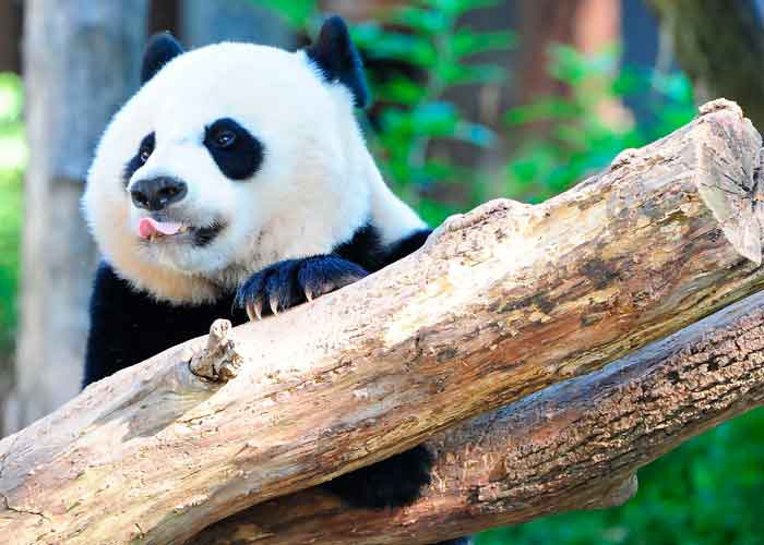 Con una herencia genética similar a la del oso, el panda se alimenta exclusivamente de bambú. Pesa alrededor de 100 kilogramos en promedio y mide hasta 1,80 metros