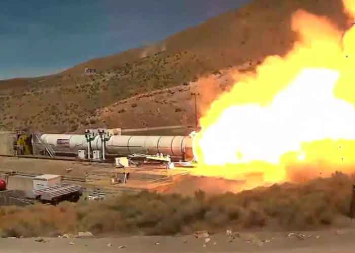 La prueba, que en total duró un poco más de dos minutos, mostró al propulsor horizontal encendiéndose y lanzando llamas anaranjadas en medio del desierto. Se calcula que el propulsor produce más de 3 millones de libras de empuje.