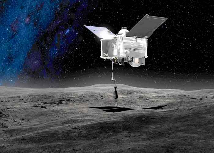 La sonda tocó durante unos seis segundos el suelo del asteroide para recoger, con ayuda de un brazo, los granos de polvo y arena del suelo de Bennu, levantados de la superficie por una ráfaga de gas comprimido.