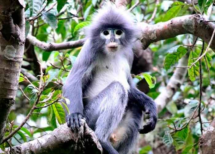 Se trata de una especie de "langur" (Trachypithecus, según su nombre científico), un mono endémico del subcontinente indio y del sudeste asiático.