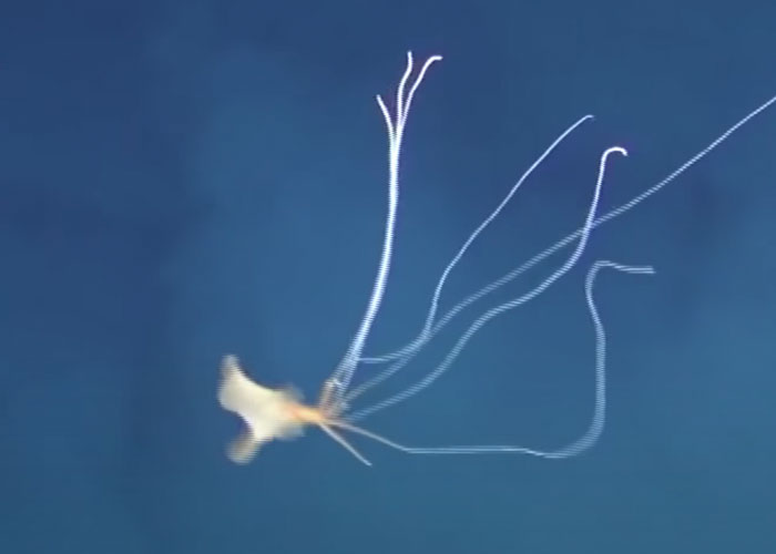 Las imágenes del calamar fueron registradas en su hábitat natural, a profundidades de entre 946 y 3.258 metros.