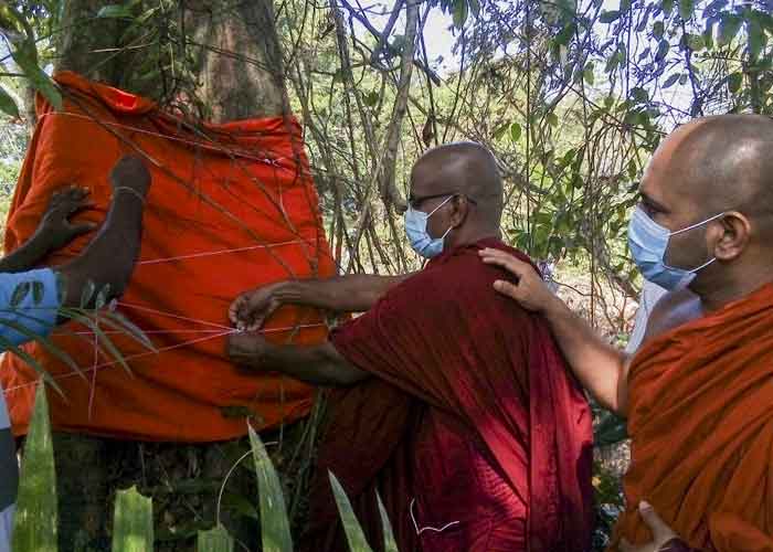 A último momento, el gobierno tomó en cuenta la conmoción pública y la movilización de los monjes budistas que la semana pasado "ordenaron" monje al árbol, vistiéndolo con una túnica monástica color azafrán y declarando que era "pecado" talarlo.
