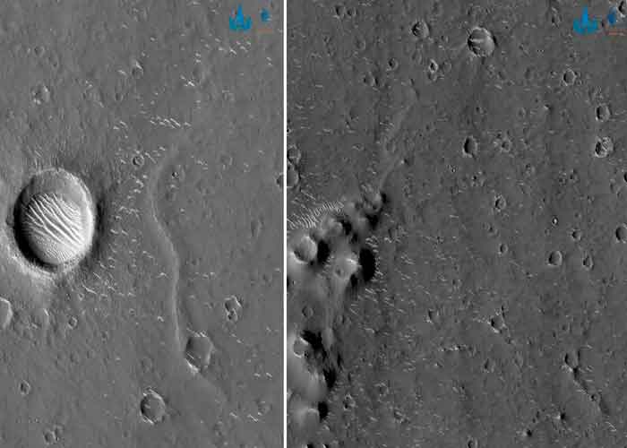 La Administración Nacional del Espacio de China (CNSA, siglas en inglés) publicó hoy jueves tres imágenes en alta resolución de Marte tomadas por la sonda Tianwen-1 del país.