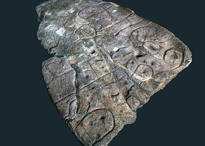 El objeto es un bloque de esquisto de tono gris azulado de 2,20 metros de largo por 1,53 de ancho y 0,16 de grosor, cuyo origen se remonta a la Edad de Bronce temprana.