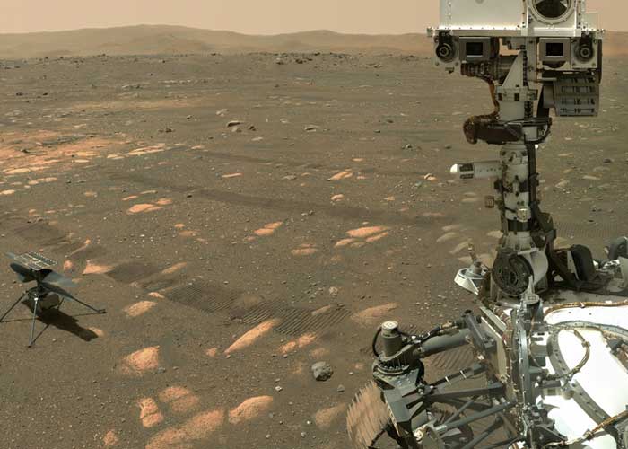 El róver Perseverance de la NASA se tomó este martes, en el 46º día marciano de la misión, una selfi junto al helicóptero autónomo Ingenuity durante su trabajo en el planeta rojo.
